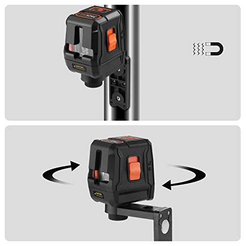- ▲【マウントベース付き】: 1/4 "三脚ネジ穴を備えたレーザーレベルで、三脚に取り付けます。強磁性マウントベースで、ほとんどの金属面に取り付けたり、レーザーレベルを360度回したり、任意の位置や角度でプロジェクトラインを調整できます