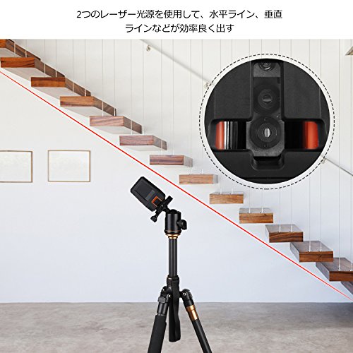 - ▲【高精度】:2つのレーザー光源を搭載されており、精度は±0.3mm/mで、誤差がとても低いです。また、レーザー光窓のデザインにより、ライン出射角は120°に達し、床から天井まで垂直線が照射することができます。