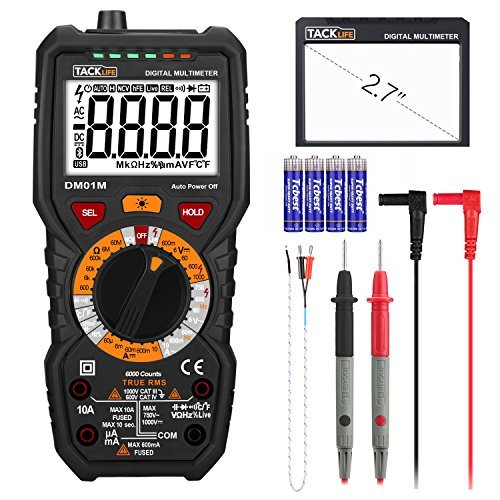 Tacklife DM01M テスター 6000カウント 真の実効値測定 手動レンジ 電流・電圧・抵抗・温度・キャパシタンス・ダイオード・周波数・導通テスター 非接触電圧測定 LED/警告音