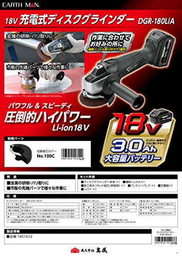 高儀 EARTH MAN 18V 充電式ディスクグラインダー DGR-180LiA