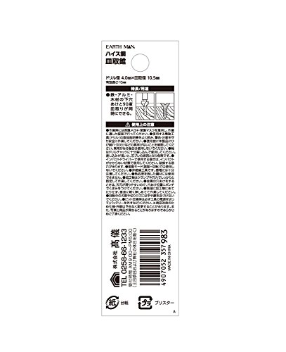 高儀 EARTH MAN ハイス鋼皿取錐ビット 4.0mm×10.5mm
