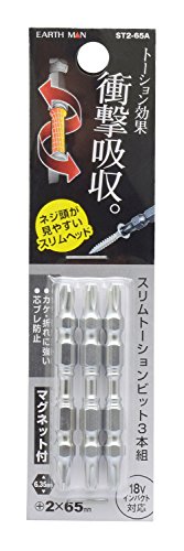 高儀 EARTH MAN スリムトーションビット +2×65mm 3本組 ST2-65A 10個入