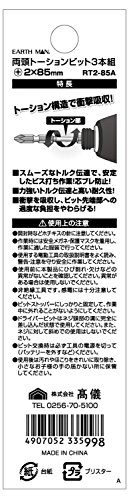 高儀 EARTH MAN 両頭トーションビット +2×85mm 3本組 RT2-85A 10個入