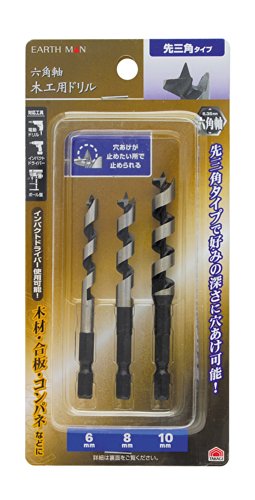 高儀 EARTH MAN 木工用 ドリル 六角軸 先三角タイプ 6・8・10mm 3本組 6個入