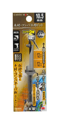 高儀 EARTH MAN 木材・コンパネ用 ビット 六角軸 10.5mm 6個入