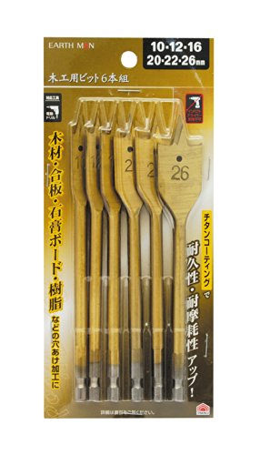 高儀 EARTH MAN 木工用 ビット 六角軸 10・12・16・20・22・26mm 6本組 12個入
