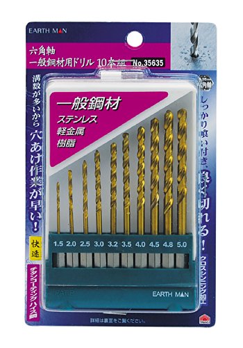 高儀 EARTH MAN 一般鋼材用 ドリル 六角軸 10本組 No.35635 10個入