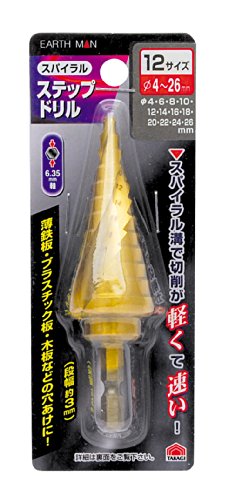 高儀 EARTH MAN スパイラルステップドリル チタンコーティング φ4~26mm 12サイズ 6個入