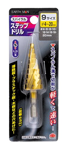 高儀 EARTH MAN スパイラルステップドリル チタンコーティング φ4~20mm 9サイズ 6個入