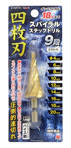 高儀 EARTH MAN スパイラルステップドリル 四枚刃 φ4~20mm 9段 STD-11 12個入