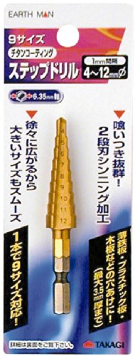 高儀 EARTH MAN ステップドリル チタンコーティング φ4~12mm 9サイズ 10個入 (金属・金工)