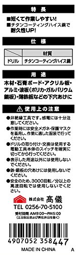 • ドリル材質:チタンコーティングハイス鋼