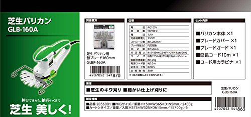 ●3つの効き目●AC100V家庭用電源使用:充電などの準備なしですぐに使える。●コード用カラビナ付:作業時のコード切断を防ぐ。●延長コード10m付:作業にとても助かる。●両刃駆動ブレード:両刃駆動だから刈込効率が良い。●ブレードガード付:キワ刈り時のはね返りを防ぎ、安全に作業できます。●滑り止めグリップ付:滑りにくく、握りやすく手に馴染むグリップ●刈込高さ無段階調整:スライドベースを調整して刈込高さを約15~25mmに調整できます。(スライドベースを外すと約10mm)●コード用カラビナ付:コードのたるみによるコード切断を防ぎ、安全に作業できます。●芝生のキワ刈りに●細かい仕上げ刈りに●電圧:AC100V●周波数:50/60Hz●電流:1.4A●定格消費電力:130W●ストローク数:約1,200min-1●ブレード駆動方式:両刃駆動●刈込幅:約160mm●刈込高さ:約15~25mm(スライドベースを外すと約10mm)●サイズ:約長さ350×幅175×高さ140~150mm●質量(本体重量):約1.0kg●電源コード長:約0.3m●延長コード長:...