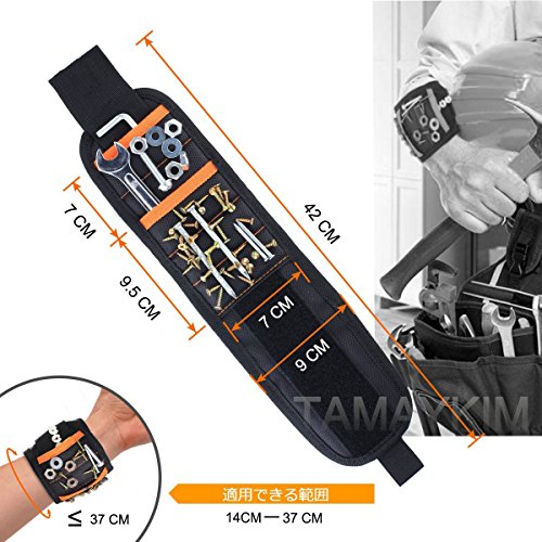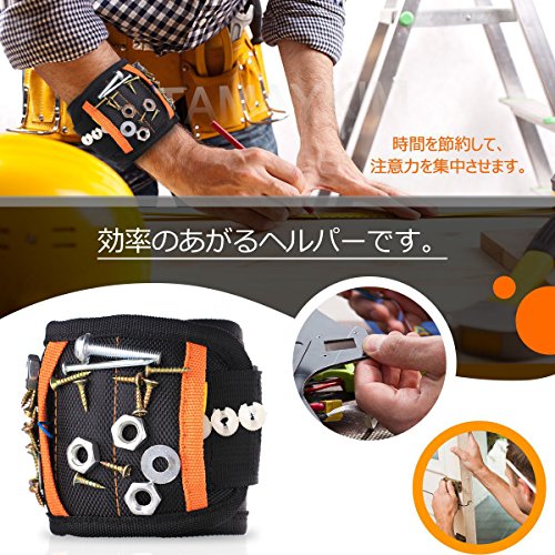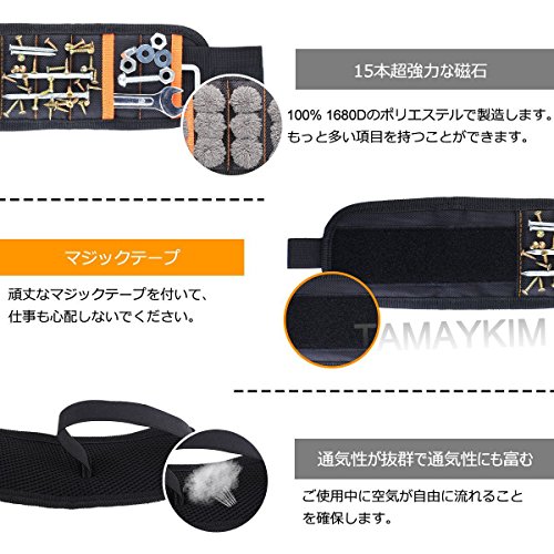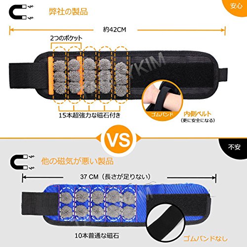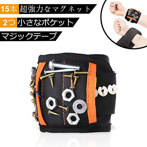5列 15本超強力なマグネット付き 磁気アームバンド 磁気リストバンド 磁気ベルト マグネットリストバンド 作業ベルト リストバンド 軽便 フリーサイズ 小部品紛失を防止 修理/建築/大工作業用