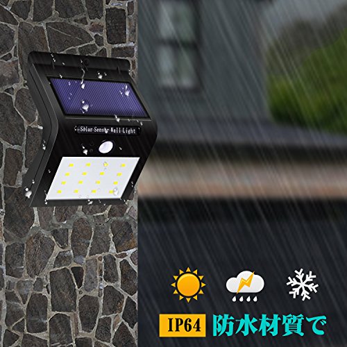 センサーライト 人感ソーラーライト LEMOSON 3つの知能モード 両面テープ付 20LED屋外照明 防水太陽光発電