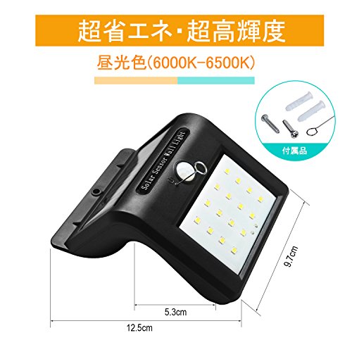 TAMAYKIM LED ソーラーライト 人感 センサーライト ソーラー壁掛けライト 防犯ライト 2W 昼光色(6000K-6500K) 高輝度 外灯 防雨 防水 2セット