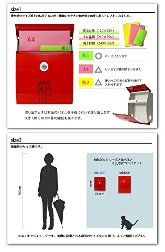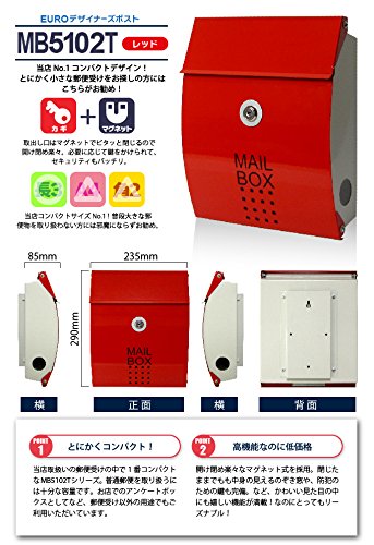 郵便ポスト 郵便受け メールボックス 壁掛け EUROデザイナーズポストマグネット開閉タイプ鍵付きMB5102T レッド 赤 40