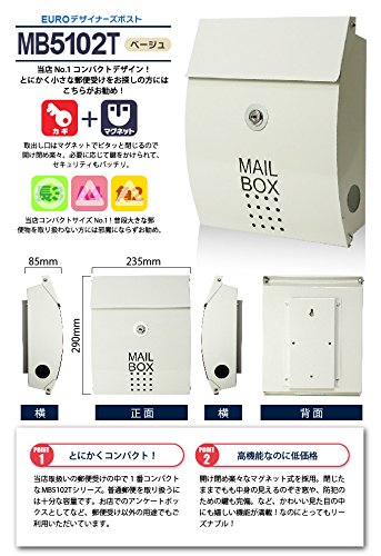 郵便ポスト 郵便受け メールボックス 壁掛け EUROデザイナーズポストベージュ マグネット開閉タイプ鍵付きMB5102T-KM-BEIGE-41