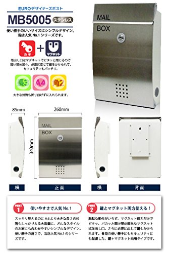 郵便ポスト メールボックス 鍵 マグネット Europeanシリーズ5005 ステンレス