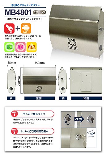郵便ポスト 郵便受け メールボックス 壁掛け EUROデザイナーズポスト MB4801 レバー開閉タイプ 鍵付き ステンレス MB4801-KL-STAINLESS 9