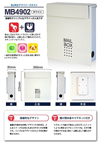 郵便ポスト 郵便受け メールボックス 壁掛け EUROデザイナーズポスト MB4902 マグネット開閉タイプ 鍵付き ベージュ MB4902-KM-WHITE 13