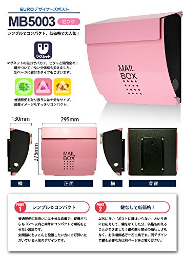 郵便ポスト メールボックス 壁掛け マグネット付き インテリアポスト Europeanシリーズ5003マグネットピンク