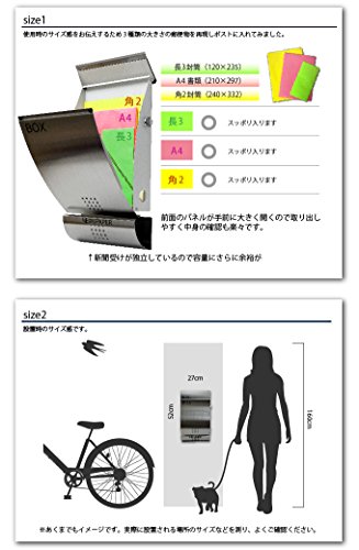 - 素材 扉:ステンレス 本体:スチール / 下部に新聞受けがついています。