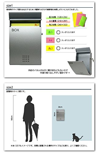 。新聞紙や長3、角2、A4サイズの郵便物が収納可能です。