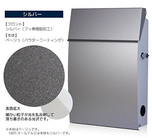 郵便ポスト 郵便受け メールボックス 壁掛け EUROデザイナーズポスト MB5805 レバー開閉タイプ 鍵付き シルバー MB5805-KL-SILVER 70