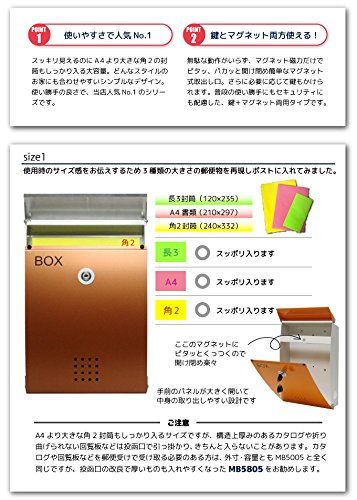 どんなスタイルのお家にも合わせやすいおしゃれなシンプルデザインで当店一番人気の5005シリーズ。壁掛け式のポストです。すっきり見えるのに長3、A4、角2サイズの郵便物が収納可能。パンフレット等もスッポリ収まる大容量です。