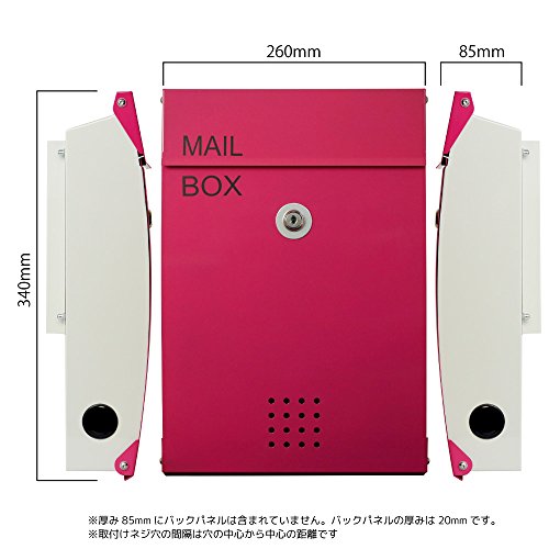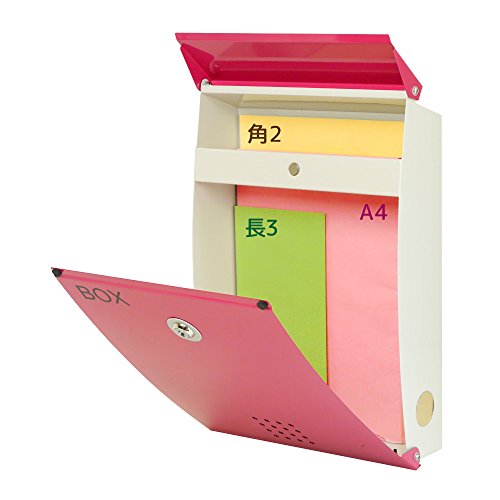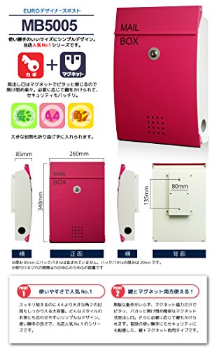 郵便ポスト 郵便受け メールボックス 壁掛け EUROデザイナーズポスト MB5005 マグネット開閉タイプ 鍵付き ローズピンク MB5005-KM-ROSEPINK 90
