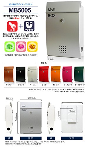 郵便ポスト 郵便受け メールボックス 壁掛け EUROデザイナーズポスト MB5005 マグネット開閉タイプ 鍵付き ダークグリーン MB5005-KM-DARKGREEN 87