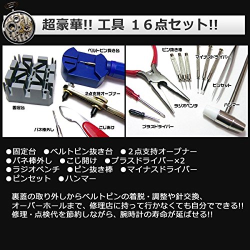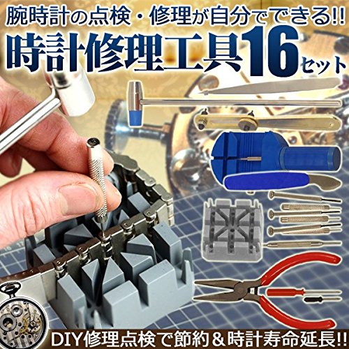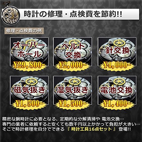 時計工具 16点セット 腕時計 修理 オーバーホール 分解清掃 バンド調整 電池交換 針交換 TASTE-TOKTOOL16D