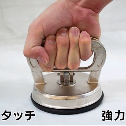 レバーを握るだけでワンタッチでがっちり吸着! アルミボディの軽い大型吸着盤です。 吸着力は50kgと強力! 様々な作業に大活躍です! 重く持ちにくい荷物に吸着させて、取手代わりにした り、 車のボディのちょっとしたヘコミを元に戻したりと、 アイディア次第でいろいろな用途に活用できます。 材質:アルミニウム 重さ:約0.5kg 吸盤直径:約12cm 最高吸着力:50kg ※石板、タイル、ガラス、金属、プラスチック等の滑らかな非多孔質面に吸着可能です。 ※車のヘコミ修理について、ヘコミ形状や材質などにより効果が出ない場合がございます。 ※輸入商品のため小傷や汚れ等ある場合がございます。 ※仕様やデザイン、パッケージ等は予告なく変更される場合がございます