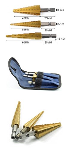 ステップドリル チタンコーティング 3本セット 詳細は画像をご確認下さい ※輸入品につき、若干の傷や汚れはご容赦くださいませ。 ※カラーはイメージ画像のため、ご使用の端末やモニター環境により 実物の色と見え方が異なる場合がございます。 仕様・外観等は改善の為に予告なく変更する場合があります。 当店はお取り寄せ品を取り扱っております。お取り寄せとなった場合、 お届けまで3~4週間程度いただく場合がございます。 メーカー完売の際はご容赦ください。