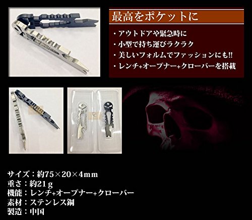 最高のマルチツールをポケットに ・アウトドアや緊急時に ・小型で持ち運びラクラク ・美しいフォルムでファッションにも!! ・レンチ+オープナー+クローバーを搭載 サイズ:約75×20×4mm 重さ:約21g 機能:レンチ+オープナー+クローバー 素材:ステンレス鋼 製造:中国