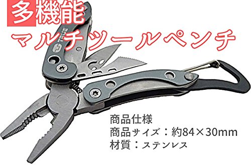 カラビナフックでカバンやベルト、財布などに ぶら下げて携帯できる折りたたみ多機能ツールです。 アウトドアや防災、日常のトラブル時など、 備えておけばイザという時に役に立つかも!! 商品仕様 商品サイズ:約84×30mm 材質:ステンレス ※輸入商品のため小傷や汚れ等ある場合がございます。