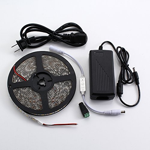 Flexible LED Strip Lights Kit 3000K Warm White 16.4ft/5m 300 Units SMD 5050 LEDs IP65 Waterproof + 3 Keys Dimmer Controller + 12V 5A Power Supply Adapter + Female DC Connector by Leadpo [並行輸入品]