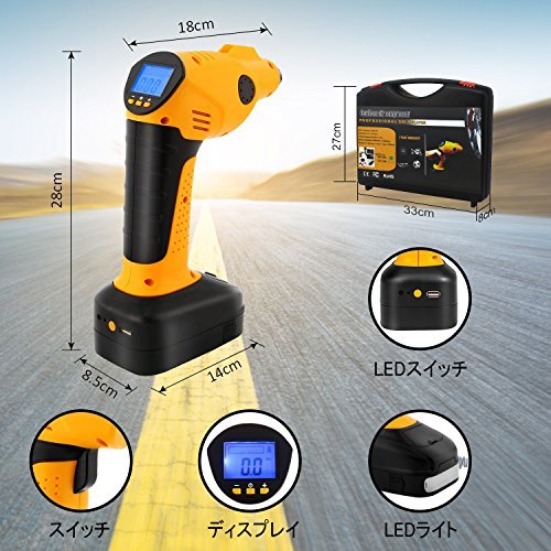 - 【便利】:車用 空気入れ 電動、本体から電池バックスを外すことができます。USBスロットがあるので、2000AMHのリチウムバッテリーはモバイルバッテリーとして使えます。 460LMのLEDライトが搭載され、暗い中でも作業ができます。