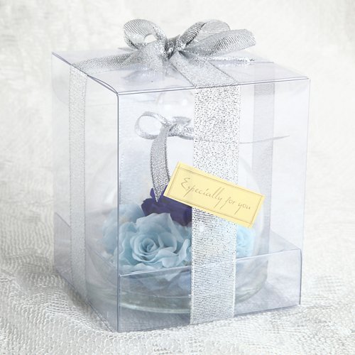 - ガラスドームが破損しないように本体は中敷きで固定しガラスドーム専用クリアボックスに入れています。商品の性質上特別な包装をすることは出来ませんが、クリアケースをリボンとシールでラッピングしています。