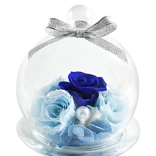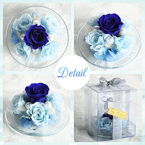 TEATSIGHT プリザーブドフラワー フラワーアレンジ ラッピング済み ガラスポット入り バラ 5輪 (ブルー)