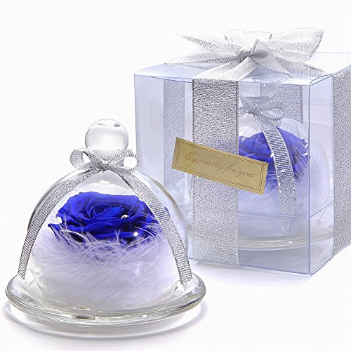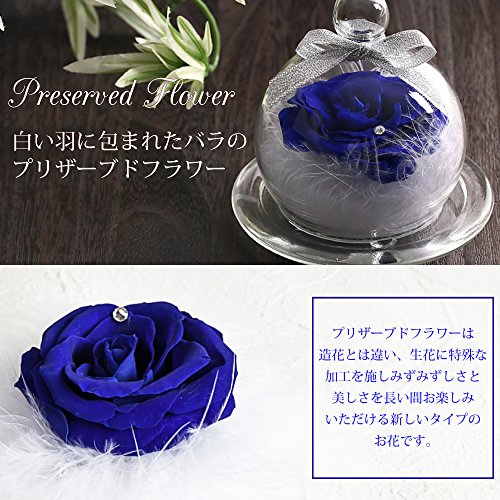 TEATSIGHT プリザーブドフラワー フラワーアレンジ ラッピング済み バラ スワロフスキー 羽根 (ブルー)