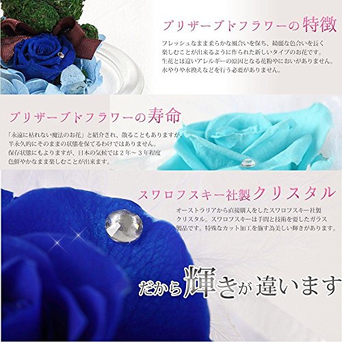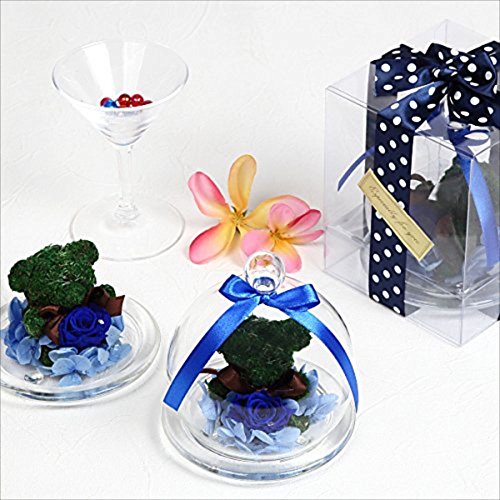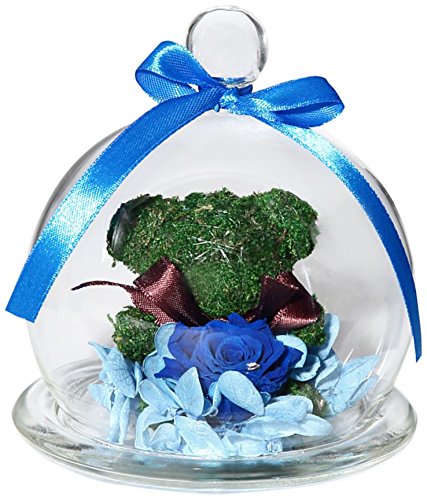 TEATSIGHT(ティートサイト) プリザーブドフラワー 枯れないお花 クリスタル付きガラスドーム バラ1輪(ブルー) アニマルモス(クマ) スワロフスキー社製クリスタル1粒 クリアケース入り