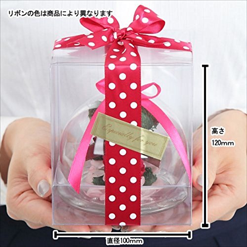 - ガラスドームが破損しないように中敷きで固定しクリアボックスに入れています。リボンとシールでラッピング後クリアパックで二重包装しています。(リボンの色は異なる場合があります) ガラスポットサイズ:約φ9×10cm 台座:φ10cm 高さ:11cm