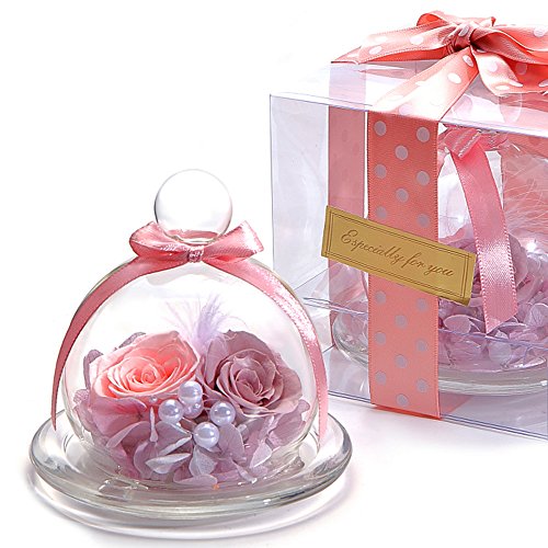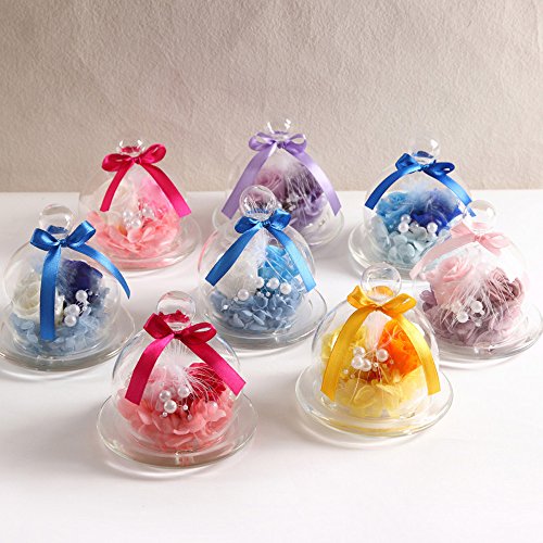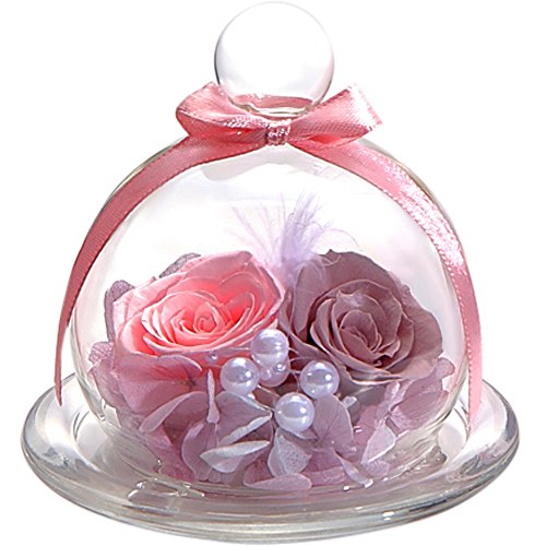 プリザーブドフラワーはホコリが苦手ですが、ガラスポットが守ってくれるので、長い間お花本来の風合いを保ち、色あせることなく輝きます。
