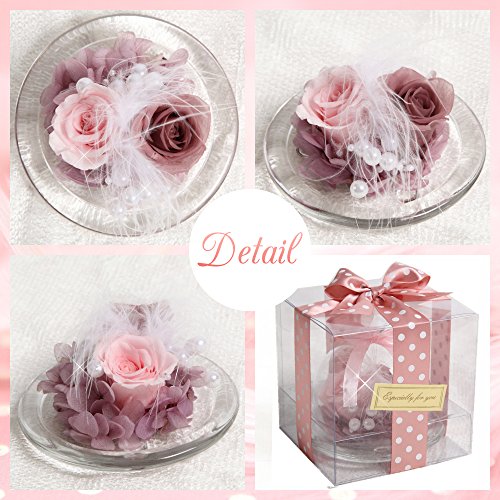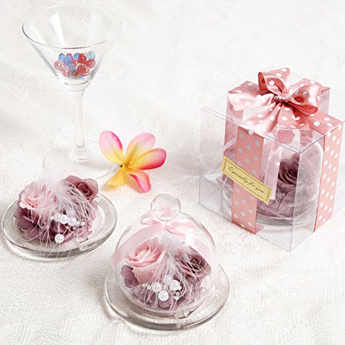 TEATSIGHT プリザーブドフラワー フラワーアレンジ ラッピング済み ガラスポット入り 2輪 (バラ アンティークピンク)