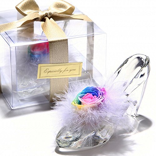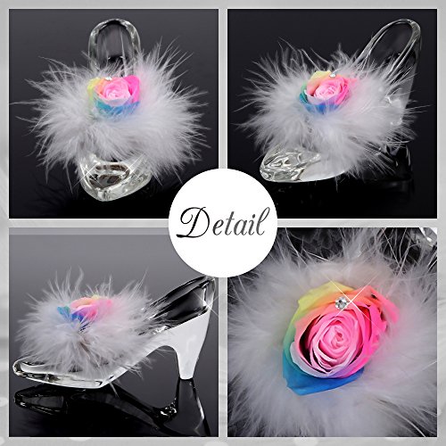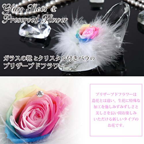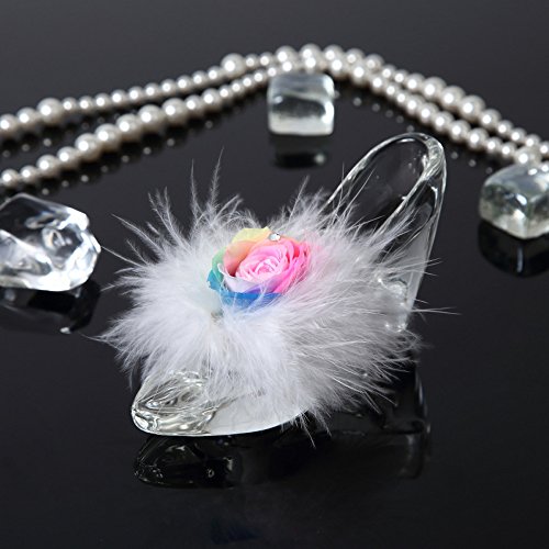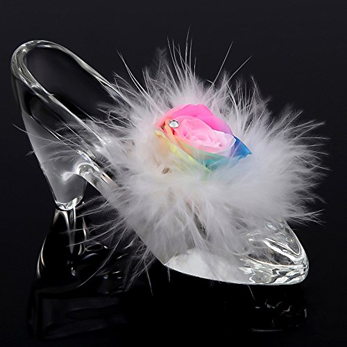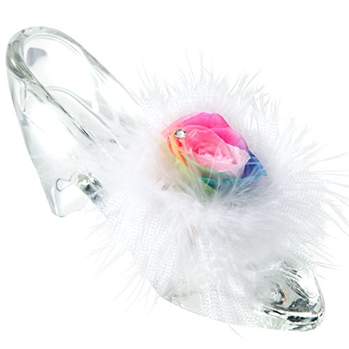 TEATSIGHT プリザーブドフラワー ガラス製 ハイヒール ガラスの靴 (バラ 羽根 レインボーローズ)
