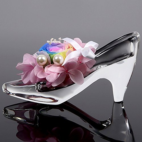 TEATSIGHT プリザーブドフラワー ガラス製ハイヒール フラワーアレンジ バラ あじさい レインボー