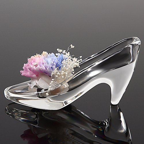 - フラワーベース:「ガラスの靴」は一般的なアクリル製ではなく本物のガラスで作っているのでガラスならではの透明感や重量感を感じていただけます。