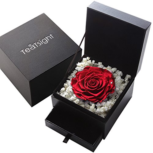TEATSIGHT プリザーブドフラワー フラワーボックス 引き出し付き バラ直径9cm以上 ( バラ レッド )